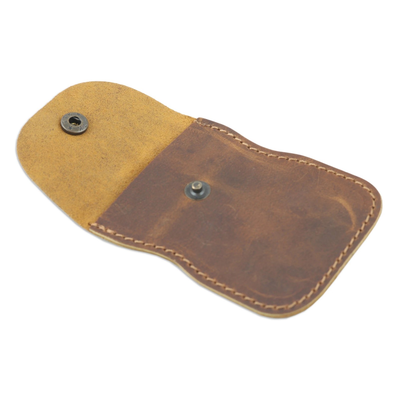 Keep your coins safe with a soft leather accessory directly from India. Crafted by local artisans, this brown coin purse comes with a handy brass snap closure that will keep your currency in place, making it the perfect accessory for the everyday.