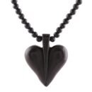 Heart-Shaped Ebony Wood Beaded Pendant Necklace. Hand-carved from ebony wood, the heart-shaped pendant of this necklace makes for a fashionable and romantic accessory. Circling the neck with petite ebony wood beads. A sterling silver extender chain increases the necklace’s length.