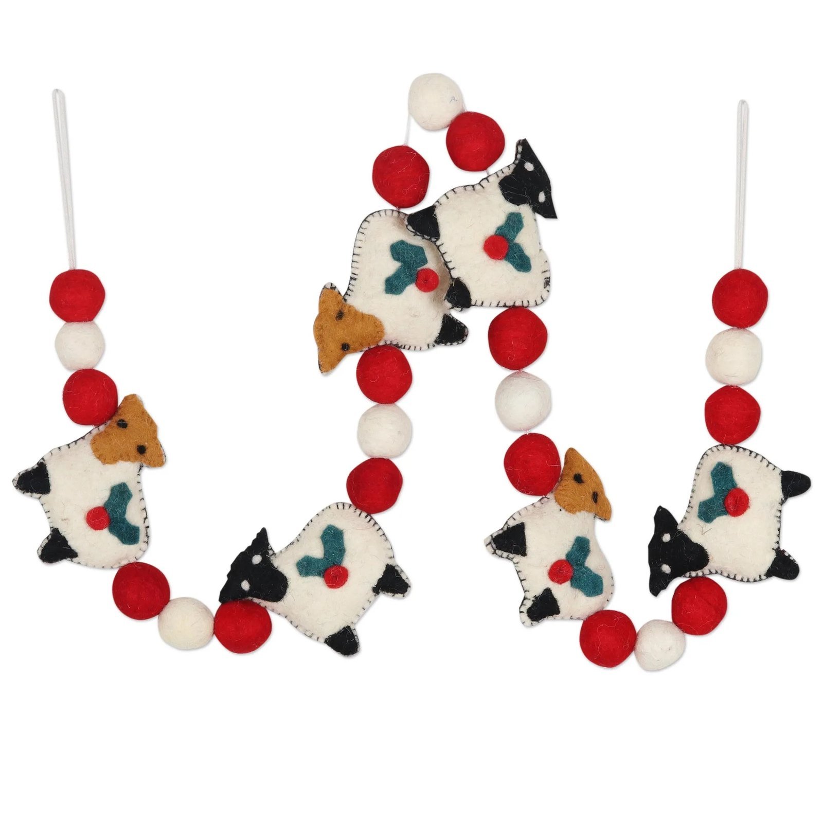 The darling sheep and bright pompoms on Christmas tree garland are sure to make your next holiday a merry one. The Indian artisan hand crafts the sheep and pompoms from 100% felt wool, stuffing them with poly fill for just the right shape. The set comes stowed inside a polyester tissue pouch for safe keeping.